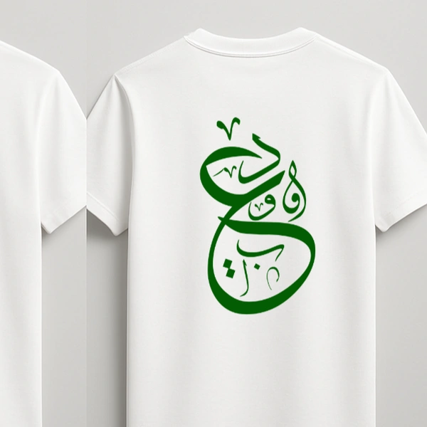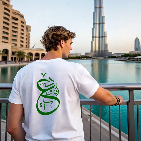 Contemporary Arabic Calligraphy White T-Shirt for Men – Minimalist Graphic Tee, Modern Typography Design