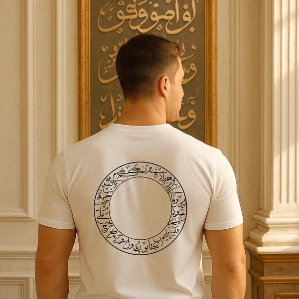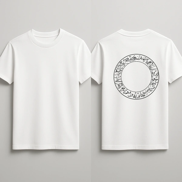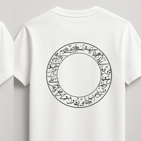 Minimal Arabic Calligraphy Circle Graphic White T-Shirt for Men – Modern Casual Streetwear Tee